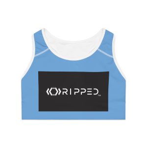 Ripped Black/White Athletic Light Blue Sports Bra (White Borders)