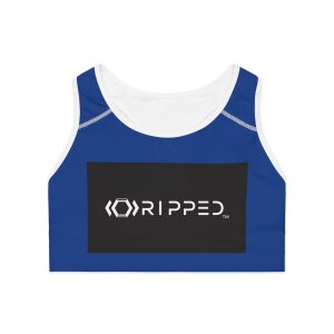 Ripped Black/White Athletic Dark Blue Sports Bra (White Borders)