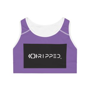 Ripped Black/White Athletic Purple Sports Bra (White Borders)