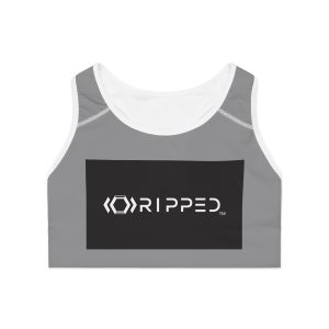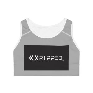 Ripped Black/White Athletic Grey Sports Bra (White Borders)