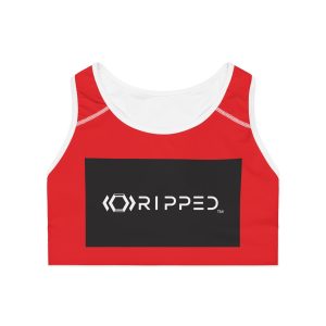 Ripped Black/White Athletic Red Sports Bra (White Borders)