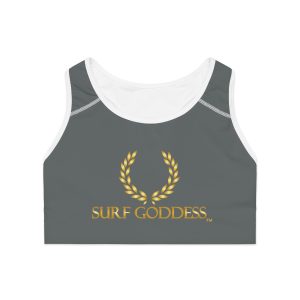 Surf Goddess Grey Athletic Sports Bra (White Borders)