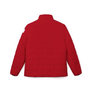 Ripped Dark Red Women’s Puffer Jacket(White Logo)