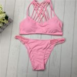 2017 cut out Bikinis Sexy pink bandage cut out Halter bikini swimsuit women cross Women’s swimwear swimming suit