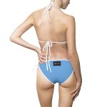 This Ripped Backside Light Blue White Strapped Women’s Bikini(Black/ White Logo) swimsuit is stylish and perfect for the beach or for just lounging around.