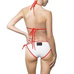 This Ripped Backside Red Strapped Women’s Bikini(Black/ White Logo) swimsuit is stylish and perfect for the beach or for just lounging around.