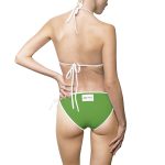 This Ripped Frontside Backside Green White Strapped Women’s Bikini swimsuit is stylish and perfect for the beach or for just lounging around.