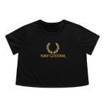 This Surf Goddess Women’s Black Flowey Cropped Tee is equipped with a flowy fit for an easy-going feel.